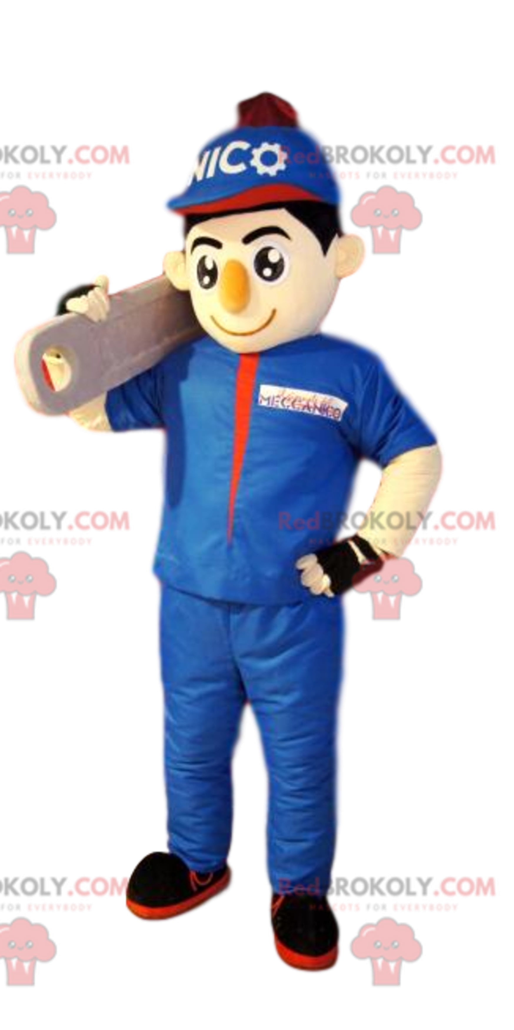 Handyman Bohomme Redbrokoly Mascot In Blue Work Clothes Walmart Com